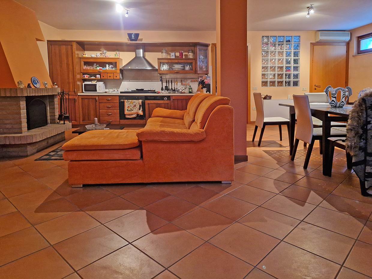 Ampio soggiorno con zona pranzo e angolo cottura